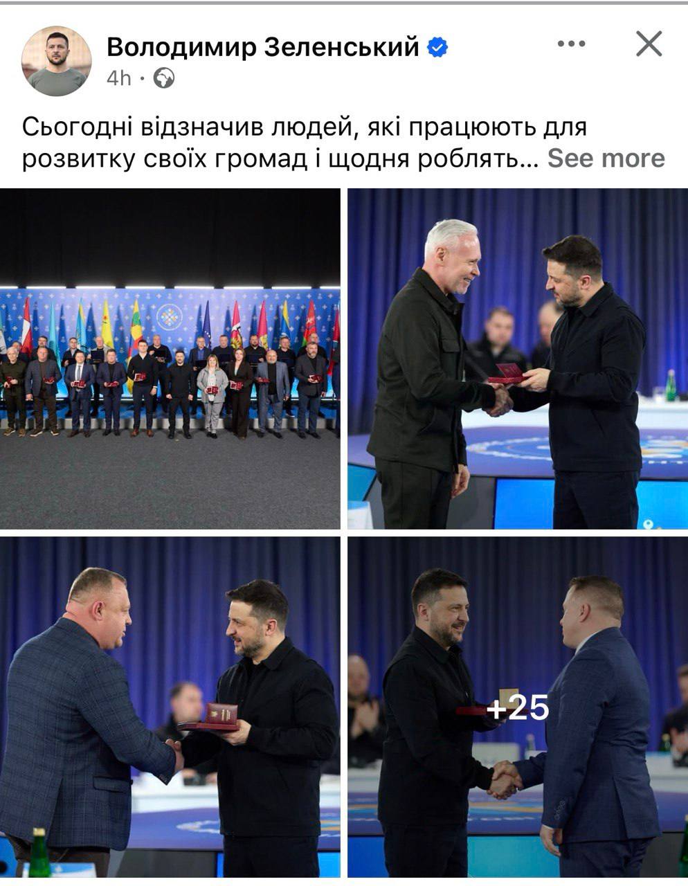 В ОП, публікуючи допис по нагородження голів міст та громад першим вирішили поставили фото президента з Ігорем Тереховим