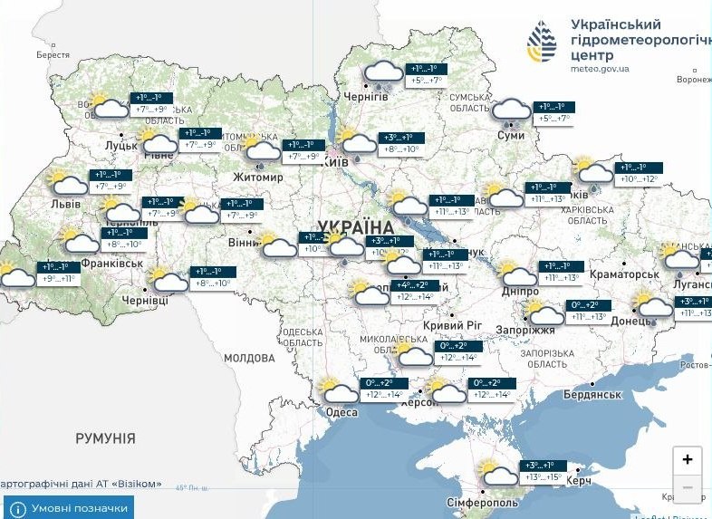 Вночі в Україні, крім узбережжя морів та Криму, очікують заморозки 0–3°️. Вдень температура становитиме 6–11° тепла, на півдні країни повітря прогріється до 15°.
