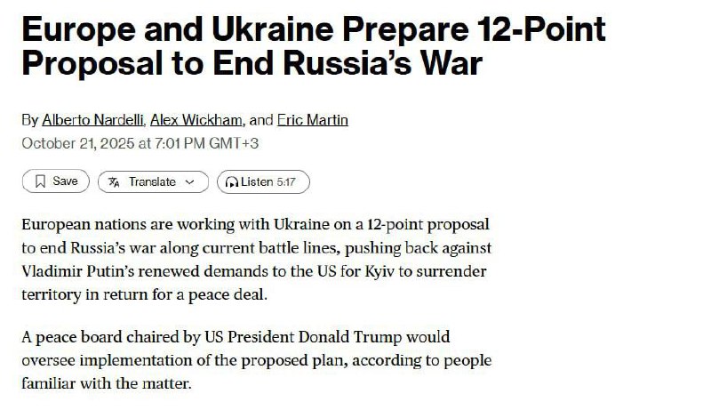 Європа та Україна готують план з 12 пунктів для завершення війни – Bloomberg. Зо…