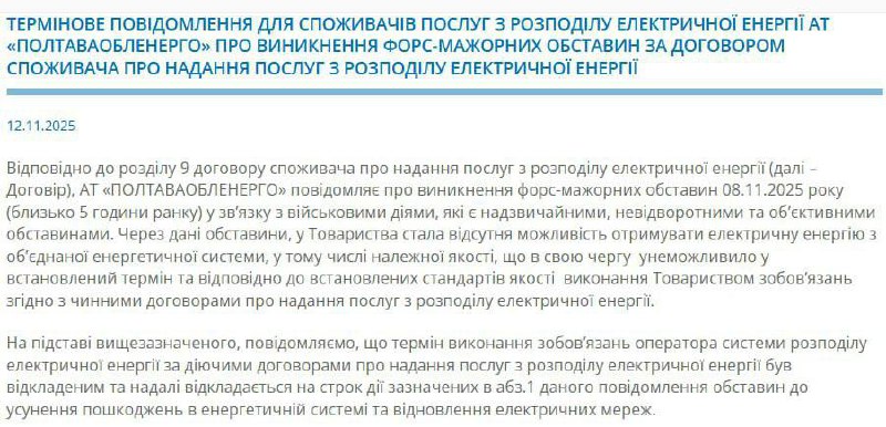 ️Полтава та область відключені від єдиної енергосистеми України через атаки РФ, – «Полтаваобленерго» Зараз триває відновлення пошкоджених мереж відновлення роботи енергосистеми.