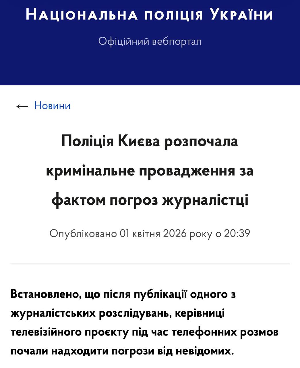 Поліція Києва порушила кримінальну справу за фактом погроз на адресу журналістів ТСН