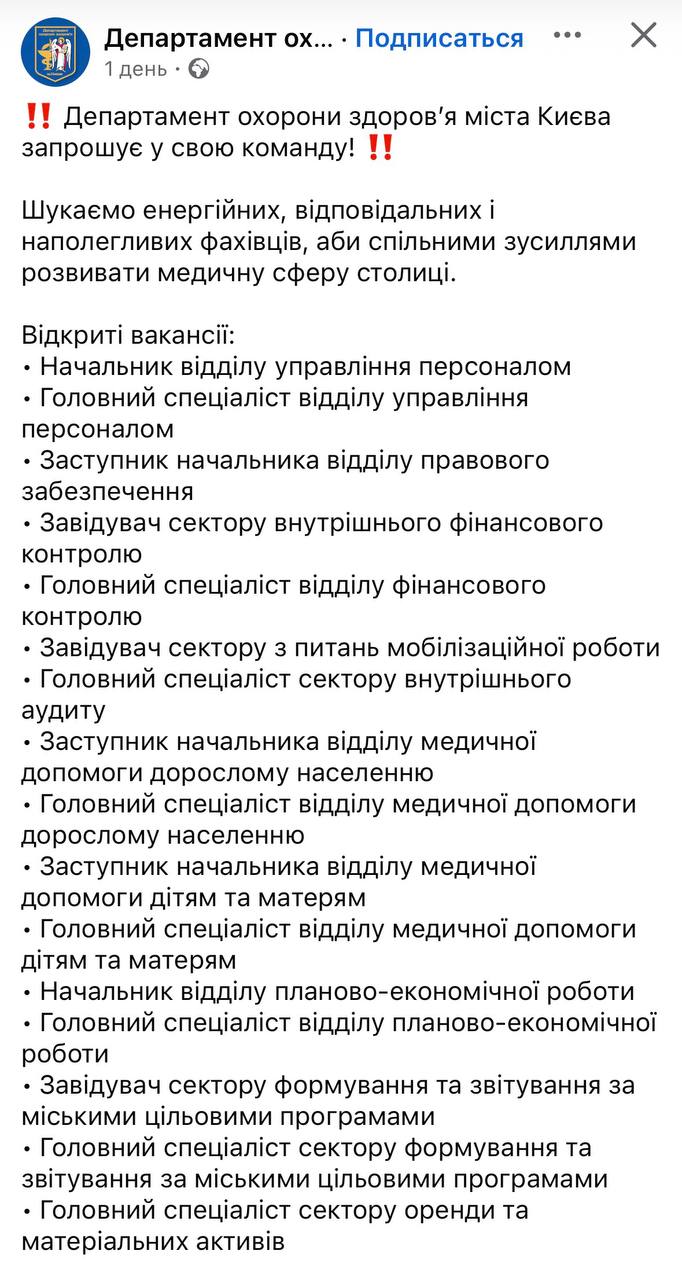 Після відставки Гінзбург у Департаменті охорони здоровʼя КМДА вирішили суттєво оновити кадри, зокрема, на керівних посадах