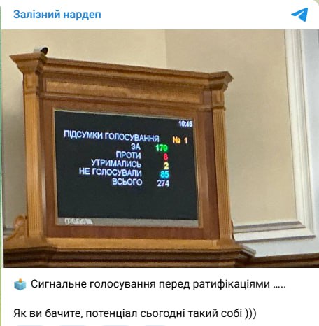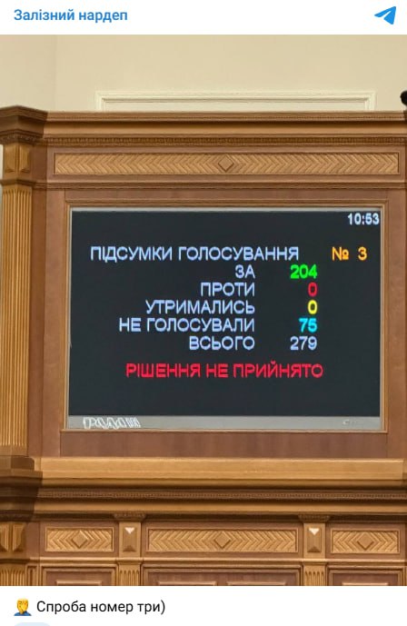 ‍️”Все…. Рада не розглянуло жодне питання через брак голосів і на сьогодні та цей пленарний закінчила свою роботу щодо розгляду питань порядку денного. До 24 лютого нічого не буде по голосуванням”, — зазначив нардеп.
