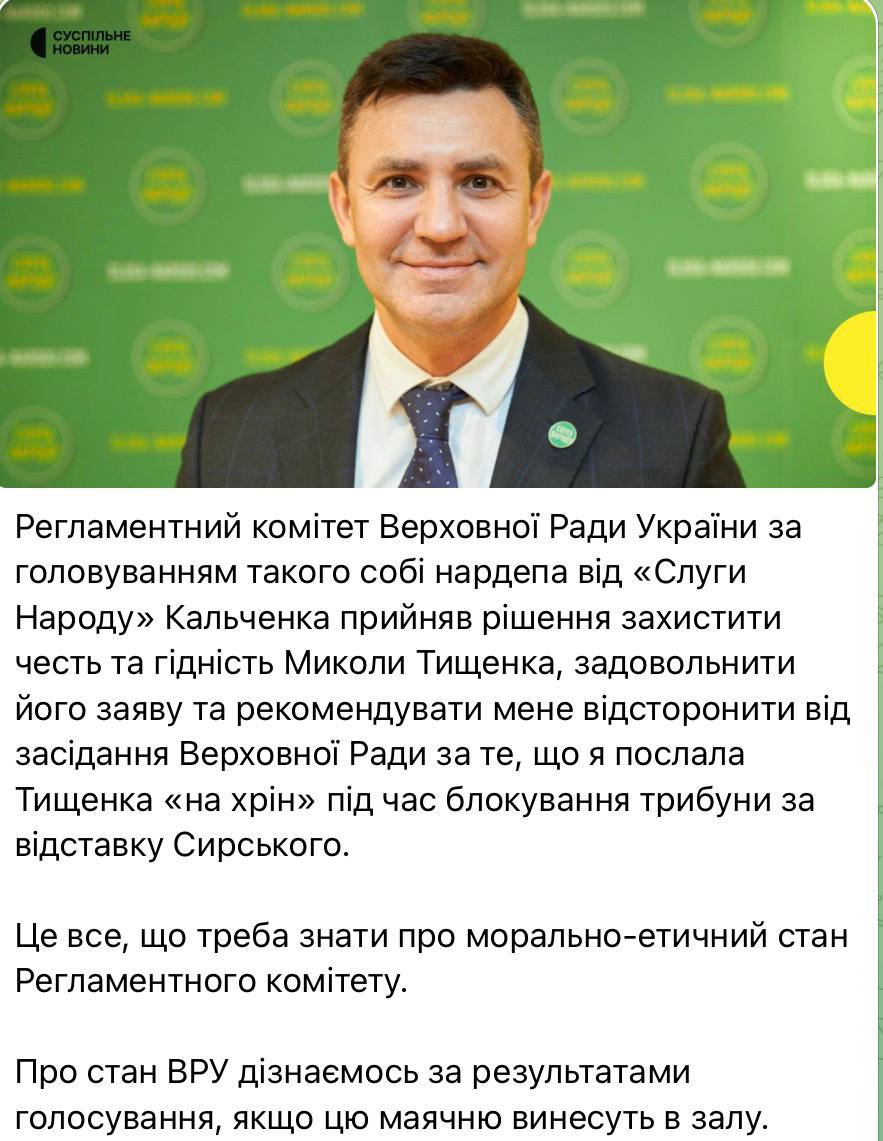 Регламентний комітет ВР підтримав відсторонення нардепка Безуглої від засідань за те, що та послала Миколу Тищенка