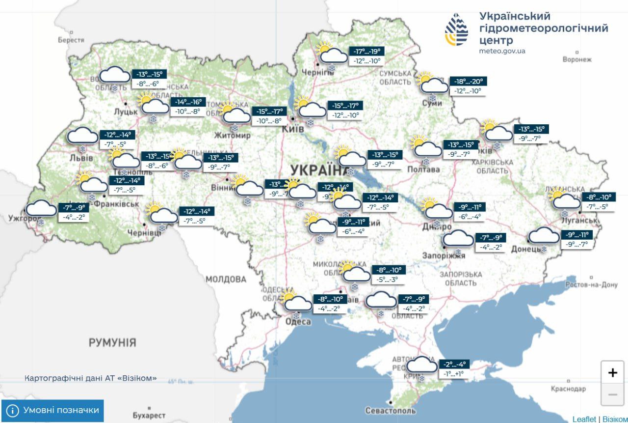 Україну накриють морози та тумани: синоптики попереджають про ожеледицю