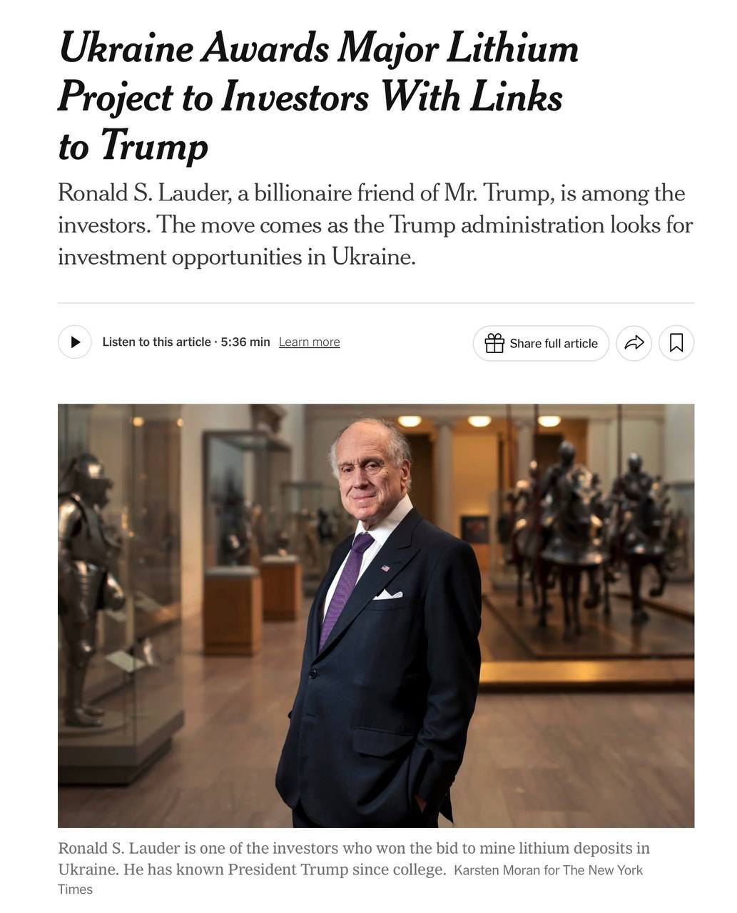 ️Велике родовище літію в Україні віддадуть у розробку другу Трампа – NYT За даними видання, Україна надала право на розробку великого родовища літію “Добра” в […]