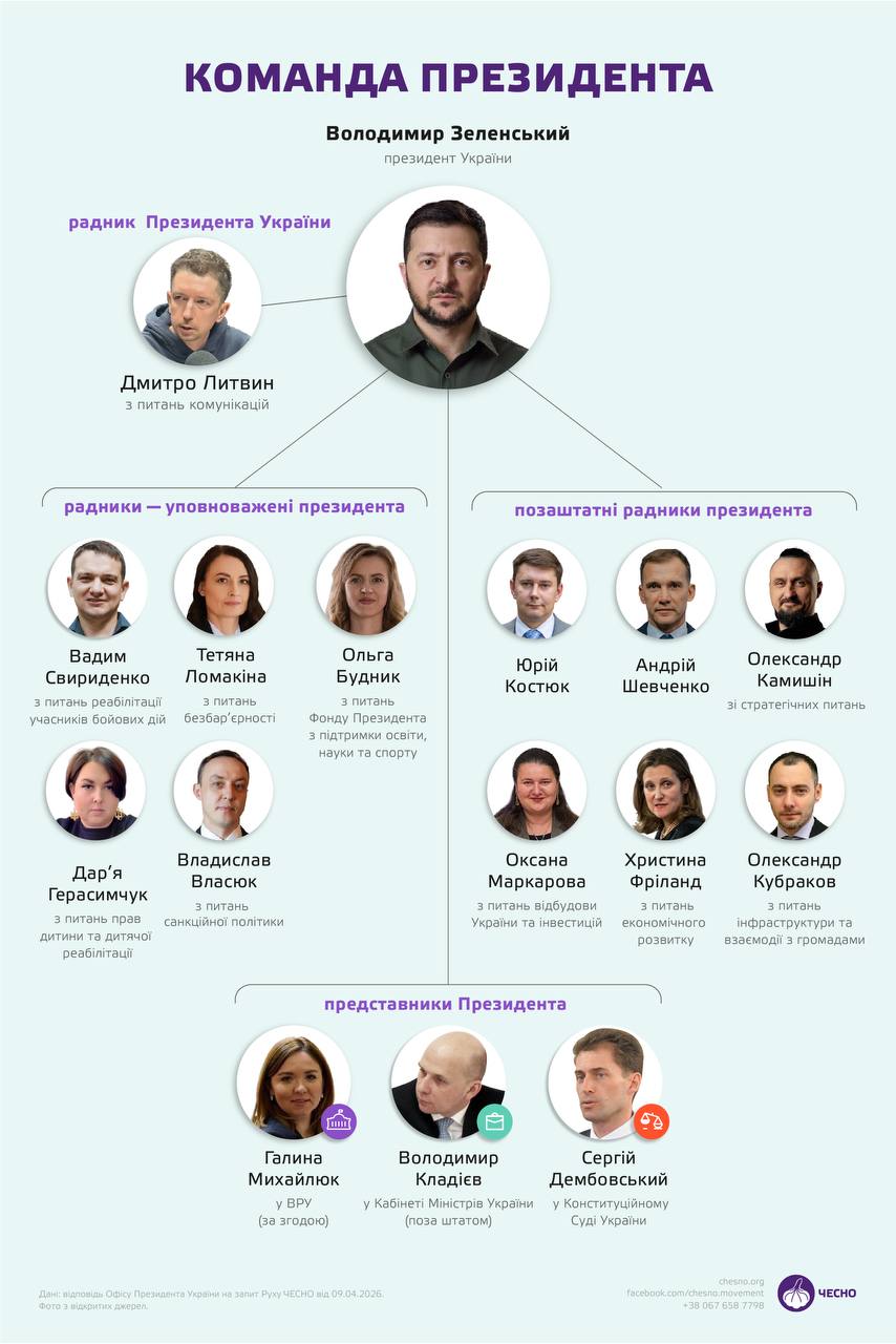 Без Лещенка та Подоляка: рух «Чесно» показав повну структуру радників та заступників в ОП