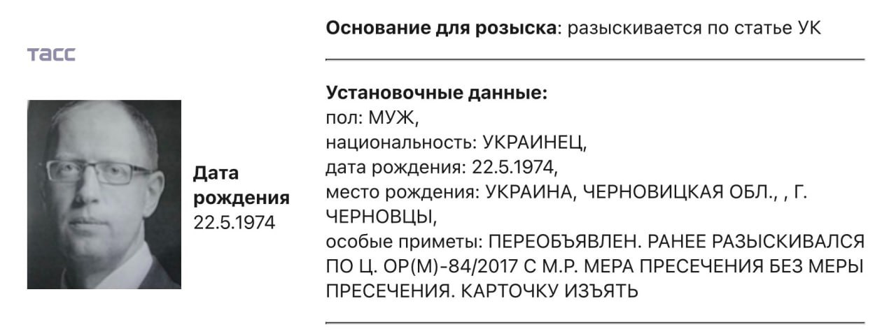 У РФ згадали про Арсенія Яценюка — їх МВС переоголосило його у розшук колишнього прем’єр-міністра України Арсенія Яценюка.