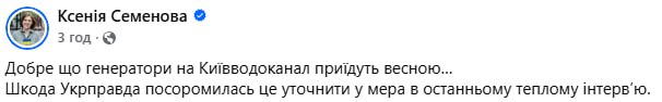 Добре що генератори на Київводоканал приїдуть весною…