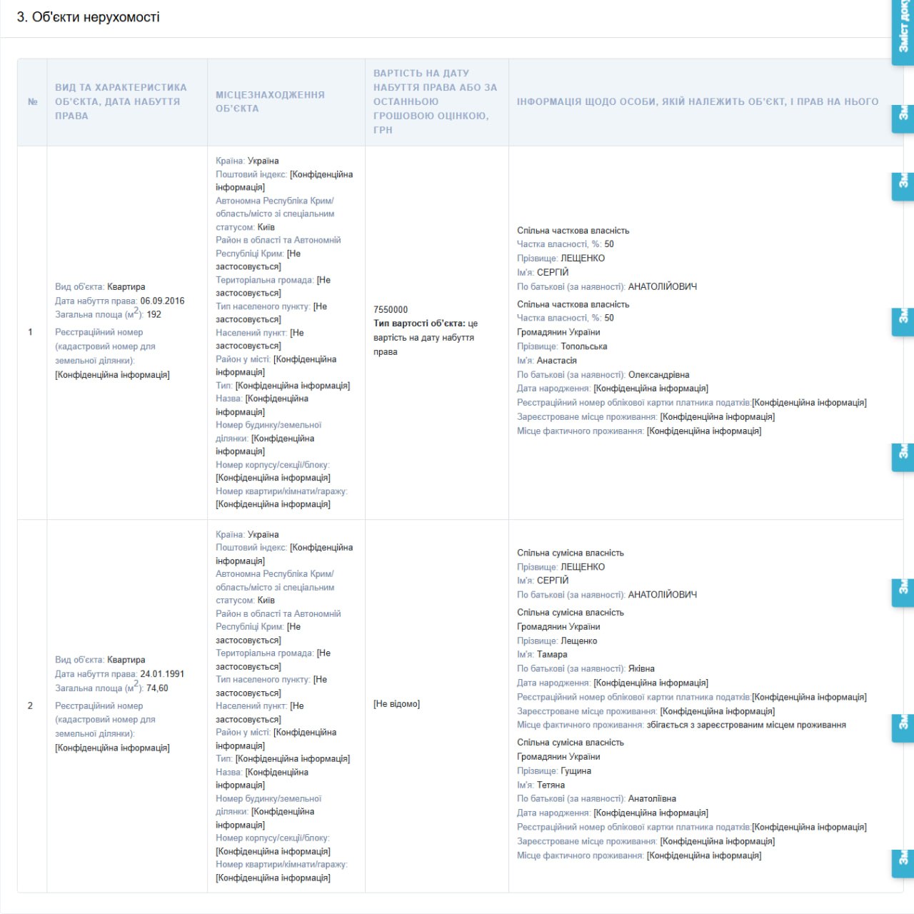 Раніше Лещенко пояснював, що частину коштів на купівлю становили його заощадження та позика, а іншу частину внесла Топольська. Отже, станом на момент подання декларації квартира залишається у спільній власності Лещенка і Топольської.