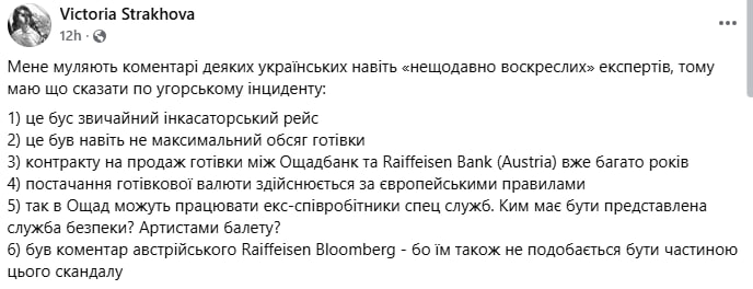 Помічниця Буданова Страхова спростовує різні версії щодо походження затриманих в Угорщині грошей та інкасаторського фургону. Заступник голови ГУР Юсов теж