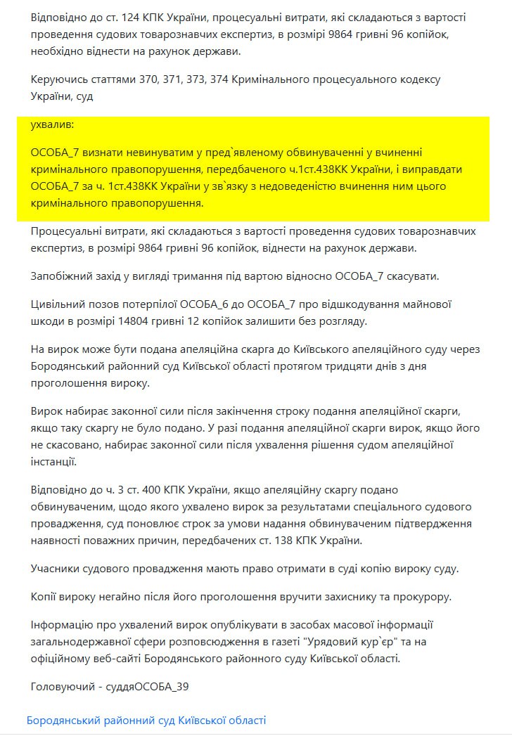 ️ Вперше в Україні суд виправдав російського окупанта у справі про мародерство на Київщині Бородянський районний суд Київської області 30 жовтня ухвалив виправдувальний вирок щодо росгвардійця Євгєнія Мурзінцева, обвинуваченого у пограбуванні приватного будинку в селі Блиставиця під час окупації Київщини у 2022 році. ️ За даними обвинувачення, Мурзінцев проник у будинок і викрав побутову техніку, відеокамеру, комп’ютерні комплектуючі та чоловічий одяг. Потерпіла жінка виїхала з села 26 лютого 2022 року, а після звільнення території виявила зникнення речей та сліди перебування окупантів. Суд визнав доведеним, що Мурзінцев перебував у складі військової частини 6720 Росгвардії на території Бучанського району, а після відступу до Білорусі відправив посилку з описом “речі” до Росії. Водночас суд дійшов висновку, що доказів його особистої участі у викраденні майна недостатньо.