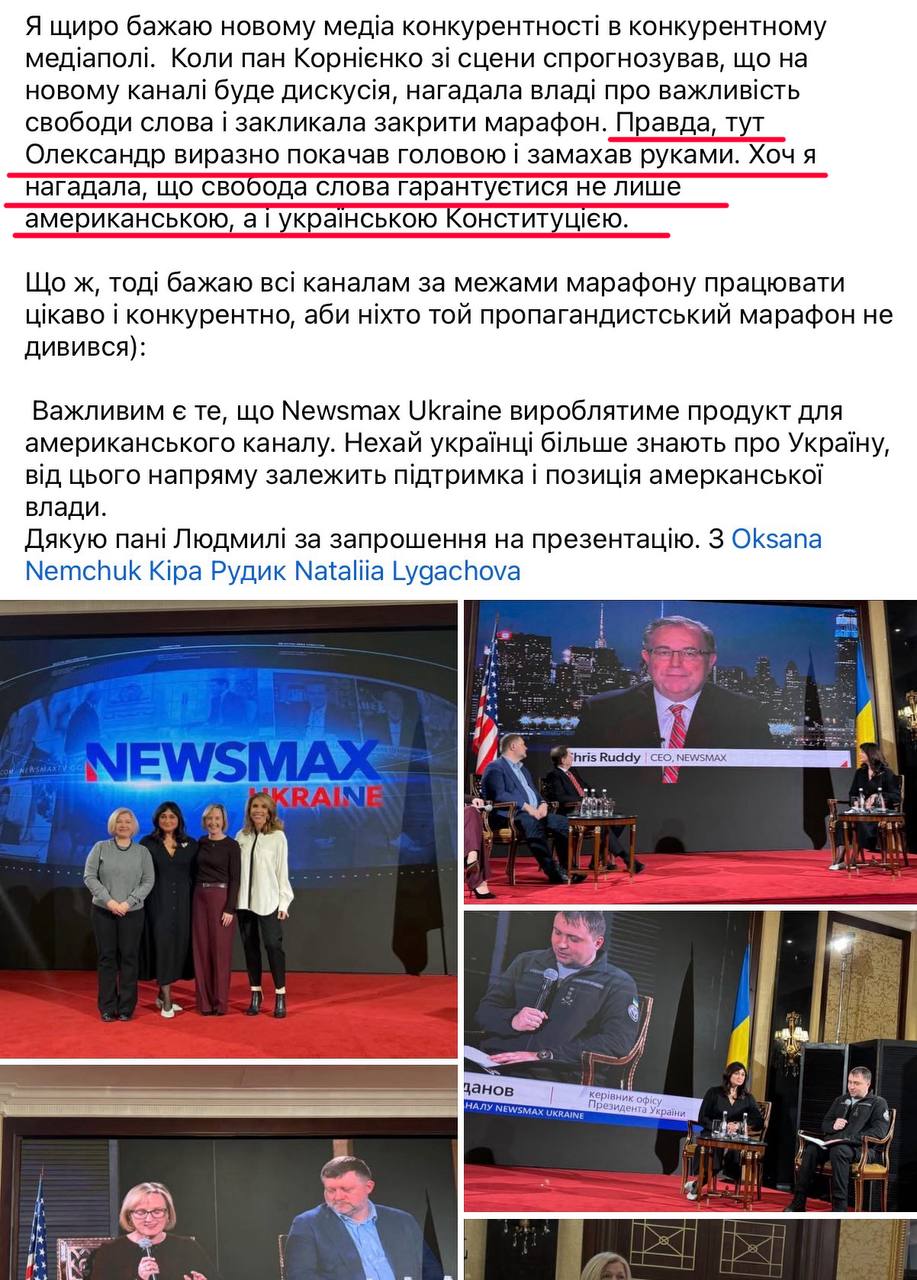 На презентації Newsmax Україна підняли питання закриття телемарафону. Корнієнко був не в захваті