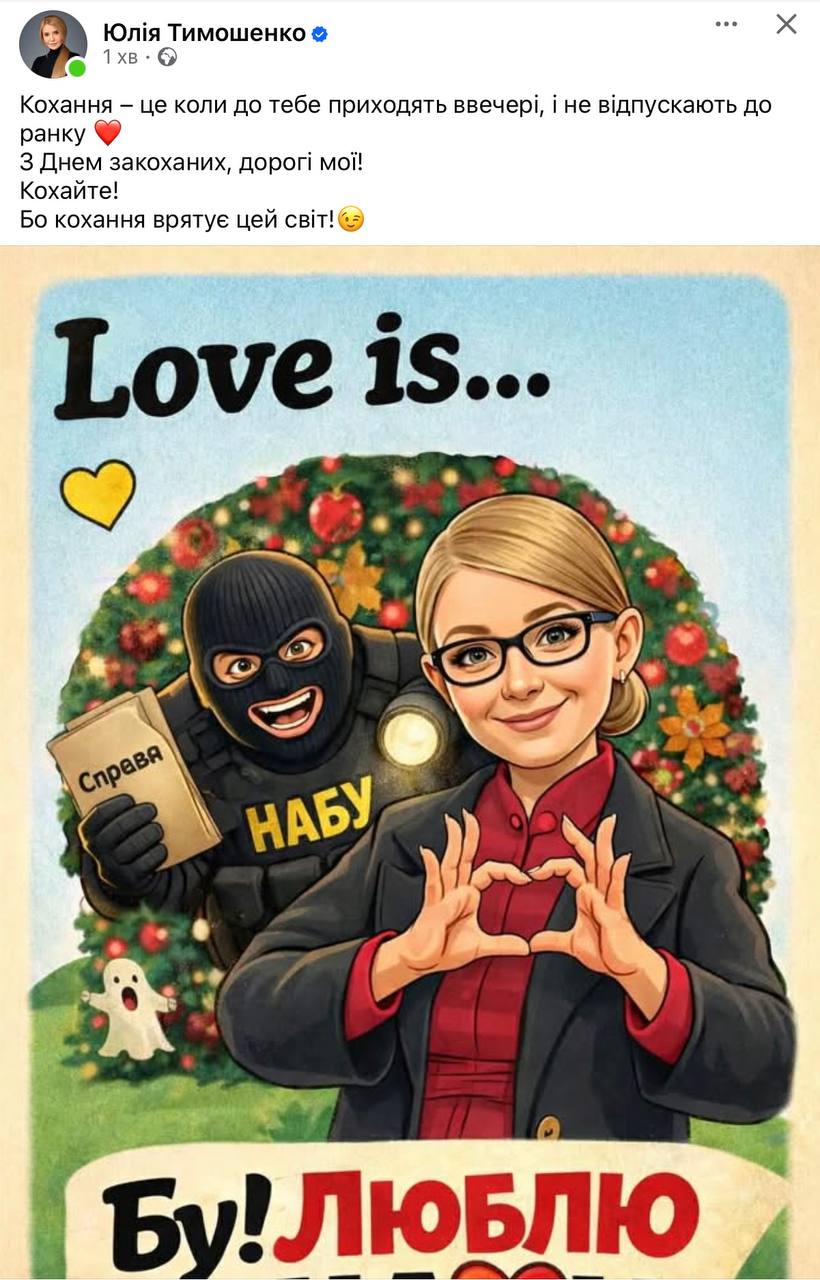 У Тимошенко в День Святого Валентина грайливий настрій, тож вона вирішила зізнатись в коханні НАБУ