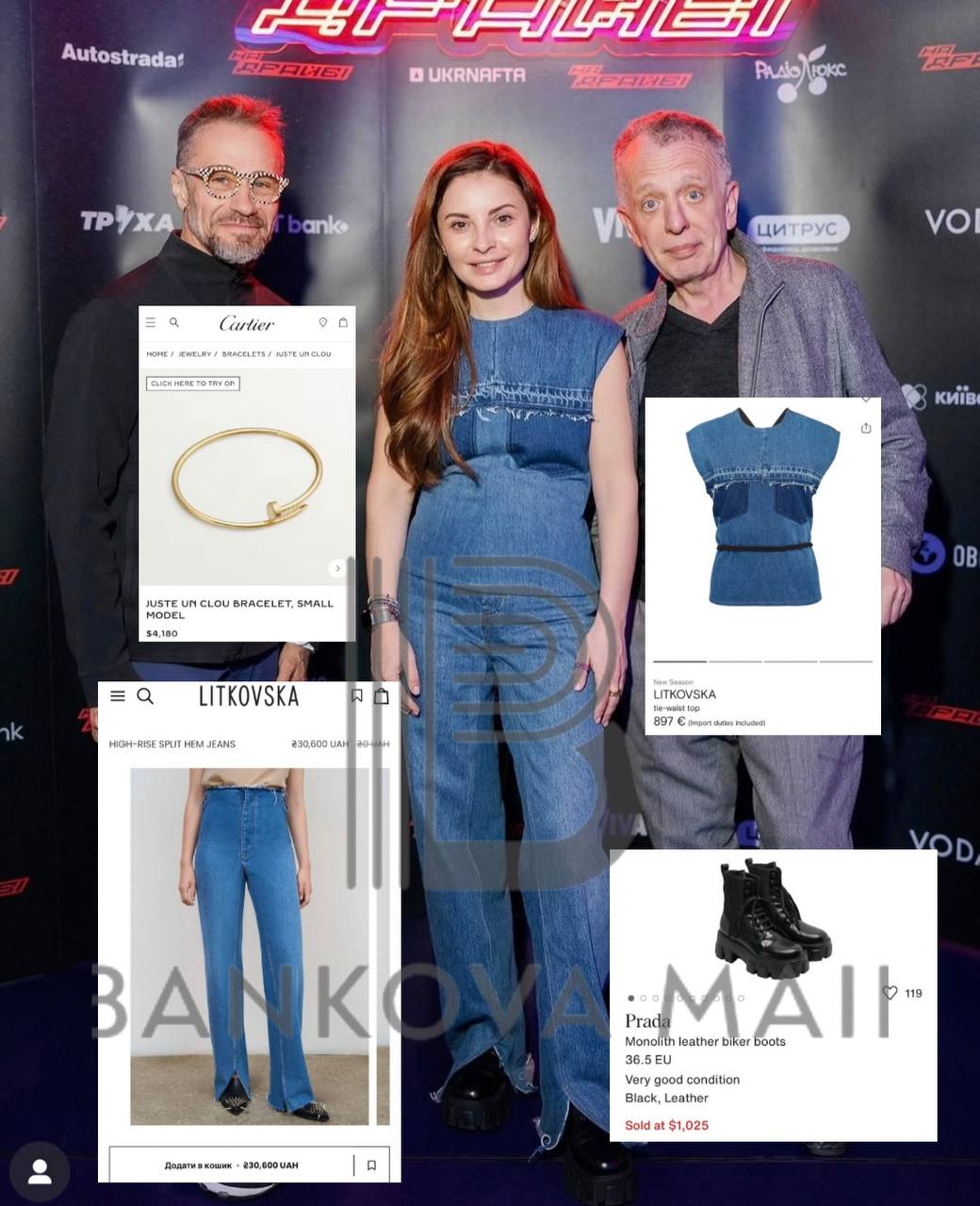 Так, для презентації фільму в Одесі Альона Тимошенко обрала джинси від Litkovska за понад 30 тис грн та топ того ж бренду за €897. Доповнила образ черевиками Prada за понад $1 тис та браслетом Cartier за щонайменше $4 тис .