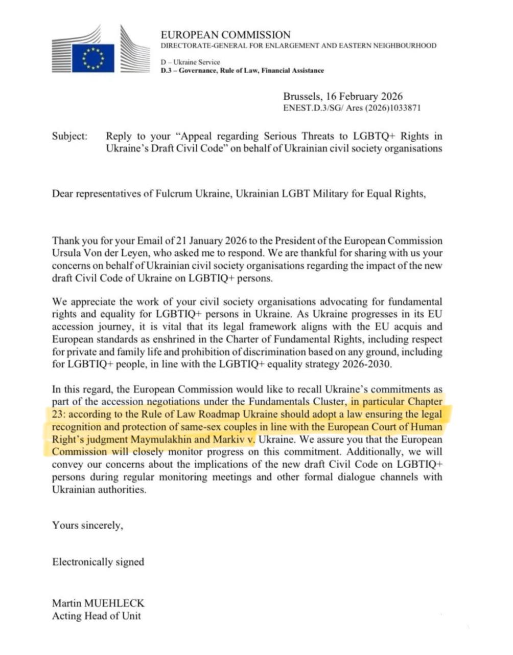 ️Україна повинна дозволити одностатеві шлюби і захищати права геїв та лесбіянок, щоб вступити до ЄС, — Єврокомісія