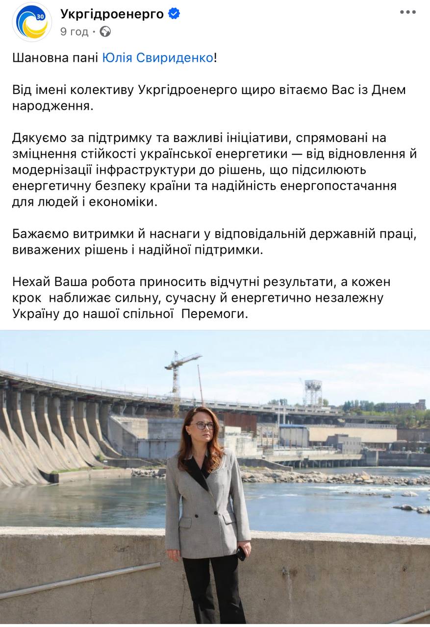 В кращих радянських традиціях: «Укренерго» на своїх сторінках влаштував привітання премʼєрки Свириденко з днем народження.