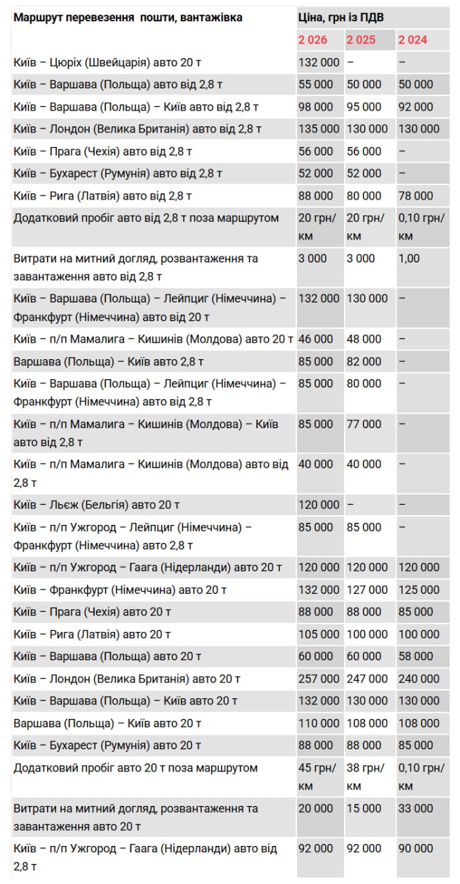“Укрпошта” без конкуренції замовила міжнародні перевезення на 298,29 млн грн: у специфікації виявили арифметичні розбіжності, а тарифи на окремі маршрути зросли до +16%