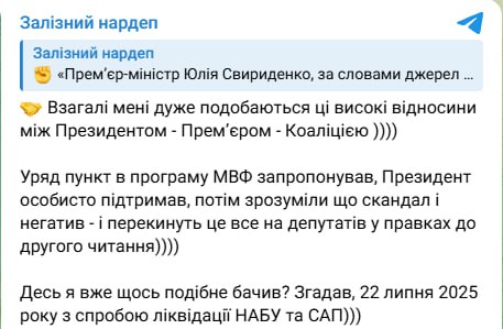 ⁉️Також нардеп додав: “Десь я вже щось подібне бачив? Згадав, 22 липня 2025 року з спробою ліквідації НАБУ та САП".