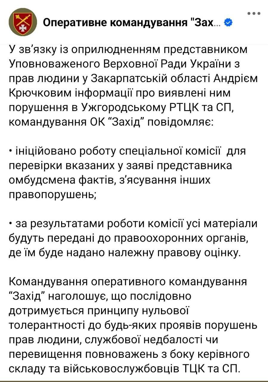 Утримували 21, 24, 30 і навіть 50 днів: омбудсмен Лубінець повідомив про «кричущі порушення» в Ужгородському ТЦК та перешкоджання перевірці