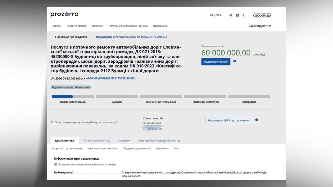 У Слов’янську оголосили тендер на поточний ремонт доріг із очікуваною вартістю 60 млн грн. Закупівлю днями оприлюднило Управління житлово-комунального господарства Слов’янської МВА.