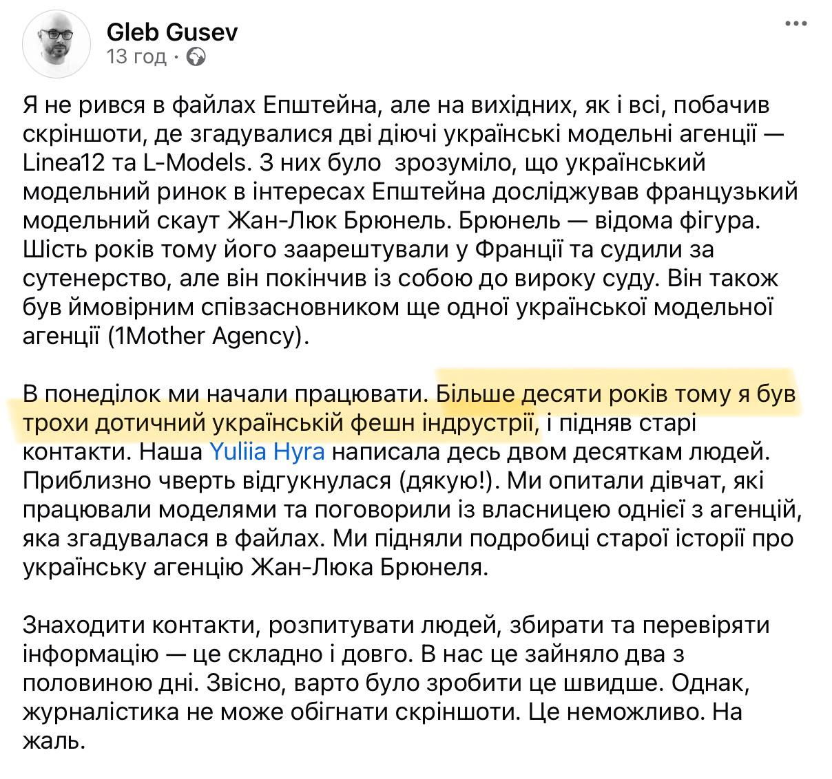 Власниця модельного агентства Linea 12, яке багато рів згадується у «файлах Епштейна», Маша Манюк пішла в контратаку. Вона шукає номер телефону Стергія Стерненка, який звинуватив її в постачанні американцям дівчат для ескорту. Манюк вимагає його вибачень.