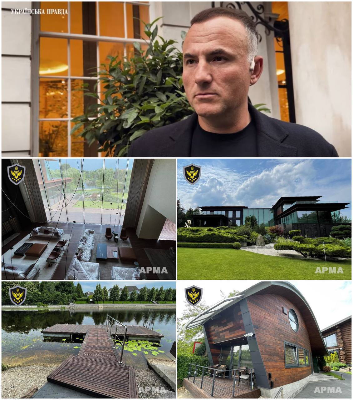 Арешт на маєток площею понад 2,4 тис. кв. м і землю було накладено в межах розслідування СБУ щодо масштабних фінансових махінацій. Активи передали в управління АРМА, яка оцінювала їх у понад 213 млн грн, однак спроби знайти управителя не дали результату. Починаючи з осені 2025 року суди поступово скасовували обмеження, і зрештою арешт було повністю знято.