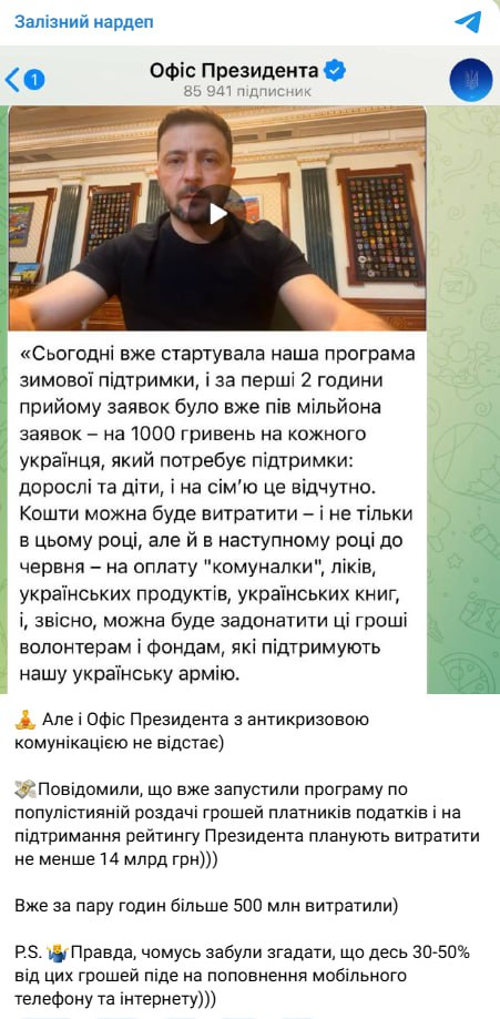 ️Железняк знову атакує Зеленського через “зимову підтримку” — перепалка після заяви про пів мільйона заявок Президент Зеленський заявив, що за 2 години з початку подання […]