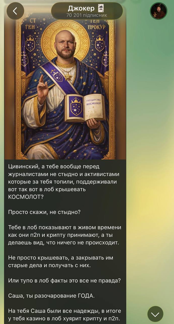 Через близького до ОП «Джокера» передали «привіт» очільнику БЕБ Олександру Цивінському через справу «Cosmolot»