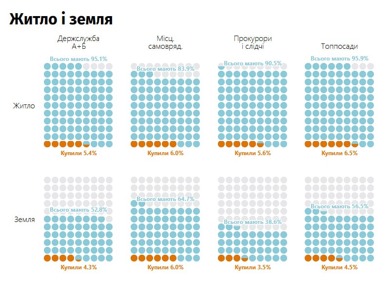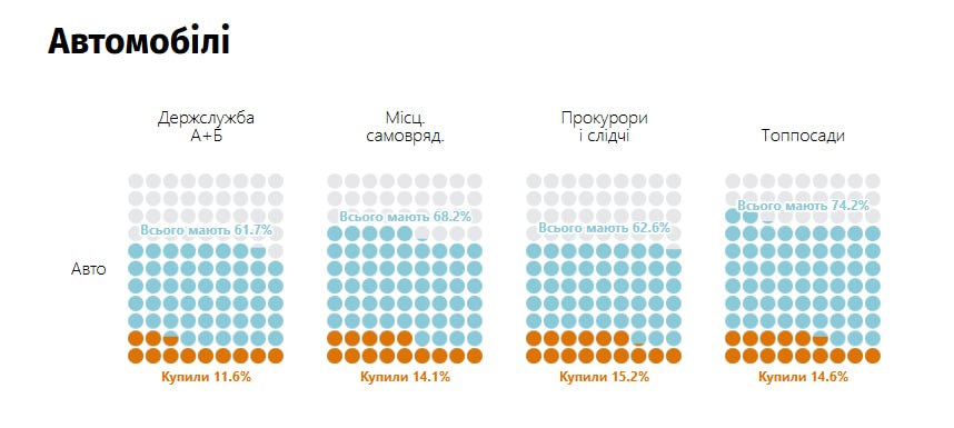 Загалом це означає, що посадовці здійснювали угоди з активами у 3–7 разів частіше, ніж середній українець, що свідчить про суттєвий розрив між їх економічною вагою та фактичною участю на ринках майна.