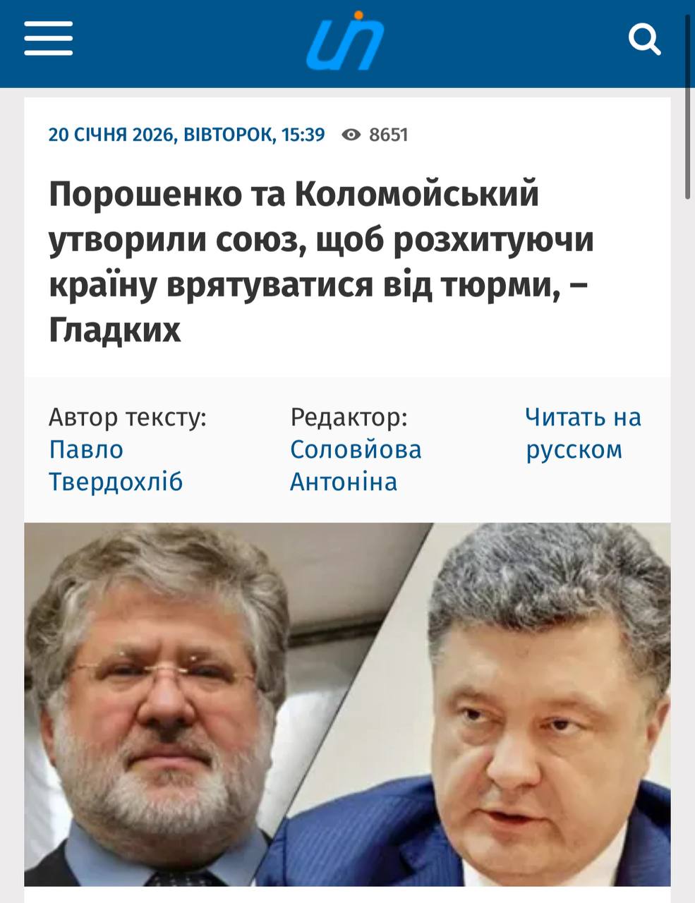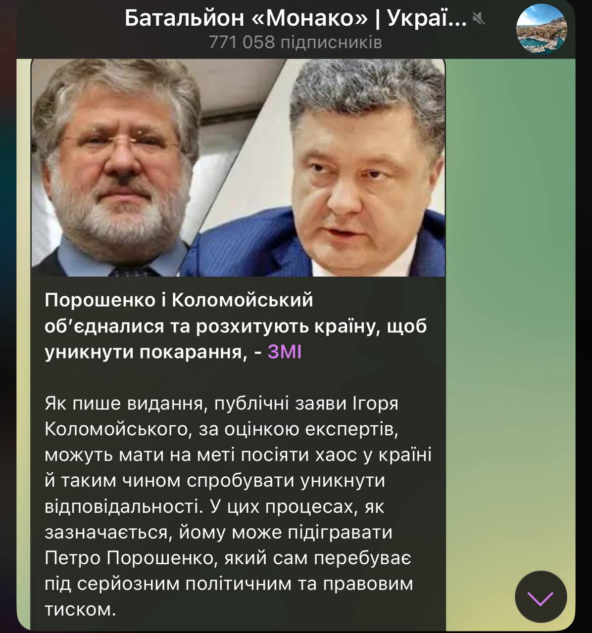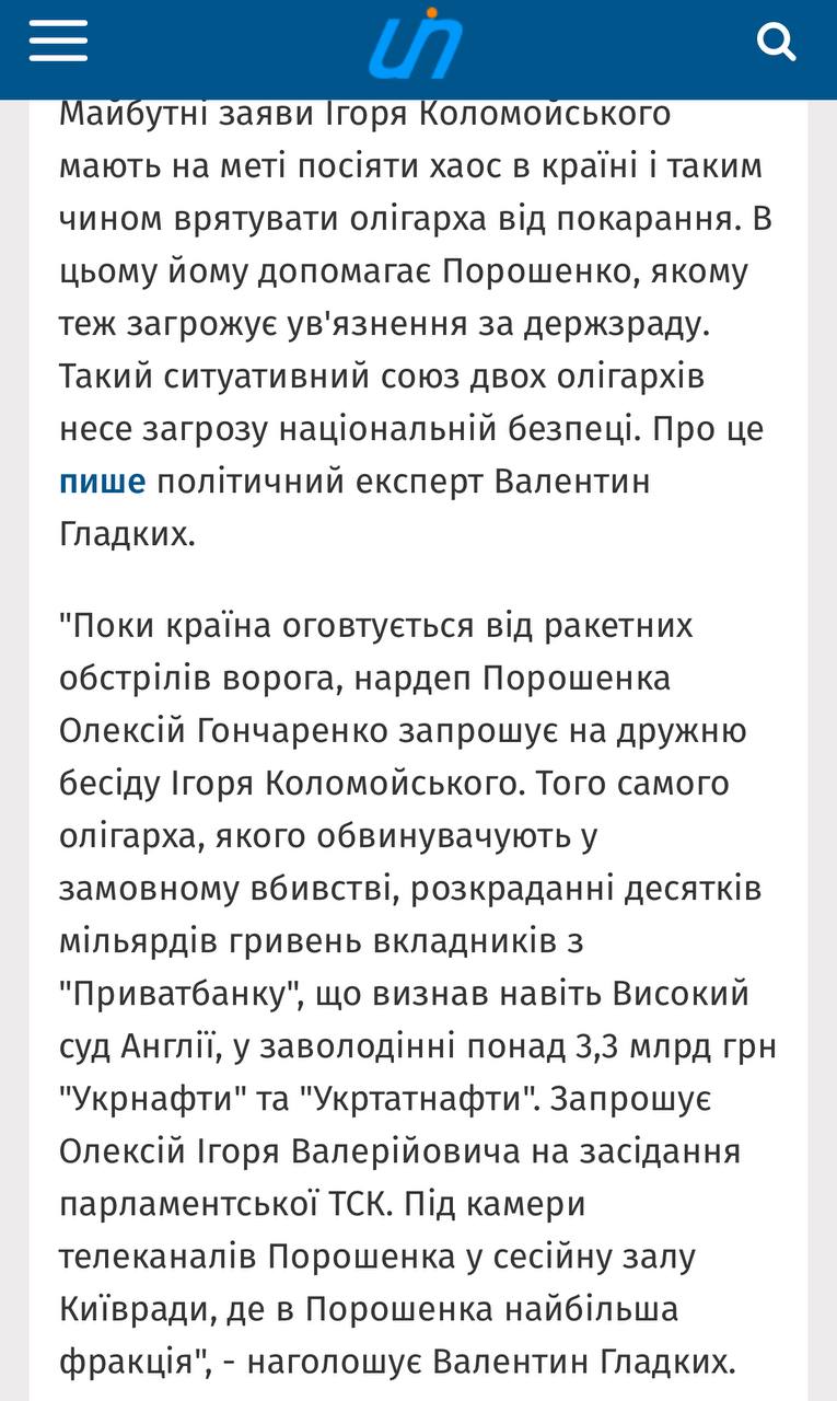 Цікавий вкид через портал Льовочкіна «Укрновини» та низку тг-каналів близьких до ОП: шириться новина під заголовком «Порошенко та Коломойський утворили союз, щоб розхитуючи країну врятуватися від тюрми»
