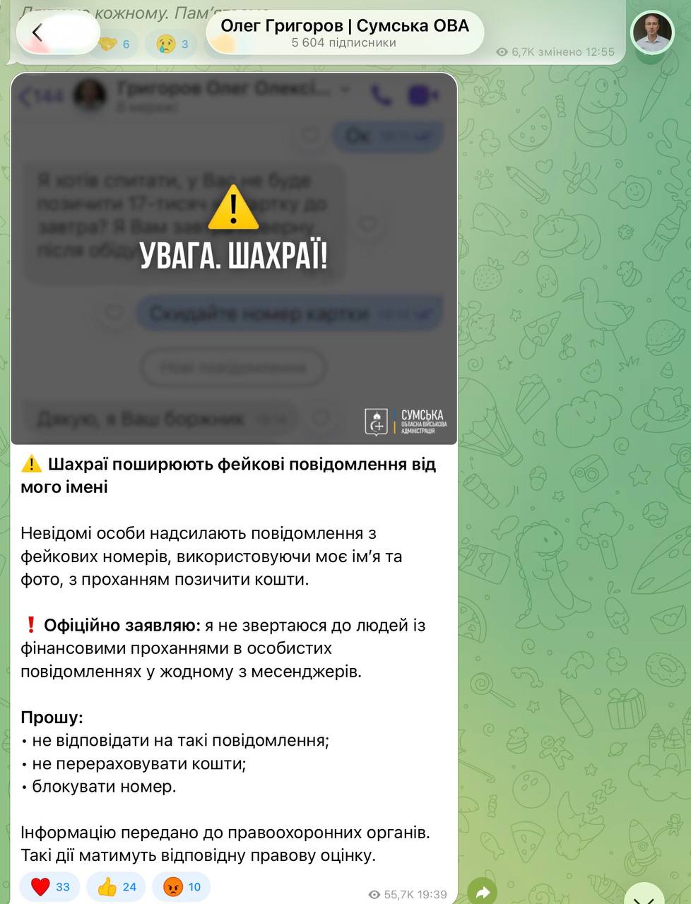 В обох випадках шахраї створили фейкові акаунти посадовців і від їхнього імені просять позичити гроші.