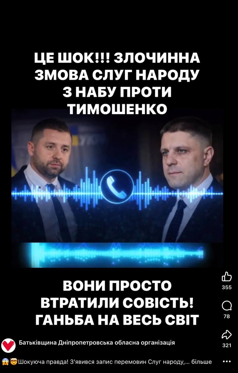У записі Арахамія «переконує» Копитіна влаштувати провокацію хабаря Юлії Тимошенко, щоб «шуганути» всіх у Верховній Раді і провести низку голосувань.