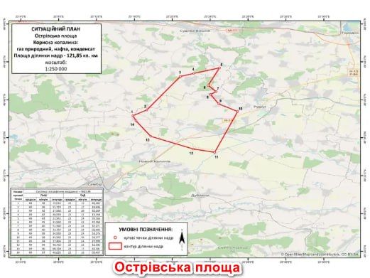 Острівська площа у Львівській області була продана ТОВ “ГБЛ-1” за 555 млн грн. У торгах брали участь “Полтавська газонафтова компанія” з результатом 555 млн грн та АТ “Укргазвидобування” з результатом 550 млн грн.