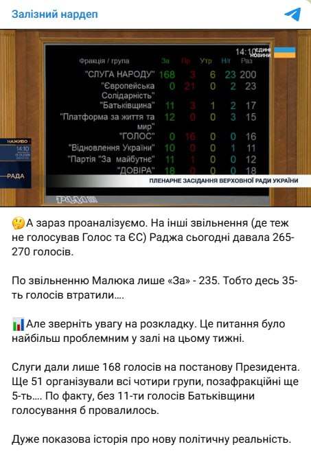Железняк: Рада звільнила Малюка 235 голосами: монобільшість не забезпечила результат, 51 голос дали групи, 11 — Батьківщина Народний депутат Ярослав Железняк повідомив у Telegram: “По […]