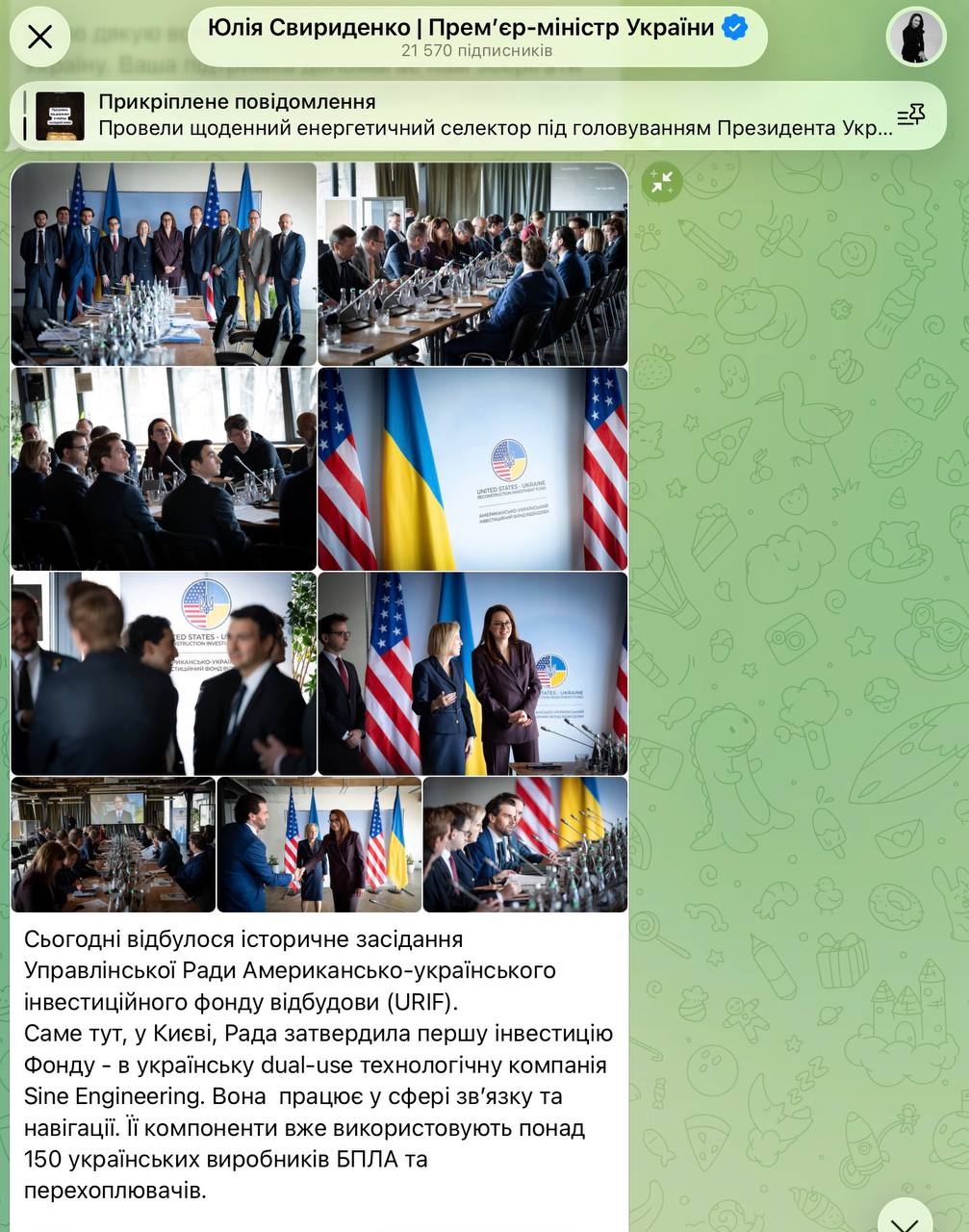 ️Свириденко підтвердила першу інвестицію американсько-українського фонду відбудови — в український стартап Sine Engineering