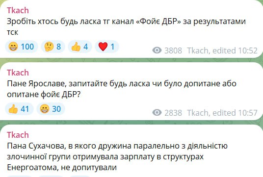 ⁉️Після цього Ткач додав: “Пана Сухачова (директор ДБР – ред), в якого дружина паралельно з діяльністю злочинної групи отримувала зарплату в структурах Енергоатома, не допитували”.