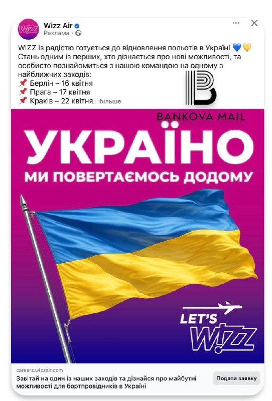 ️Wizzair повертається в Україну? В соцмережах запустили рекламу з анонсом поверн