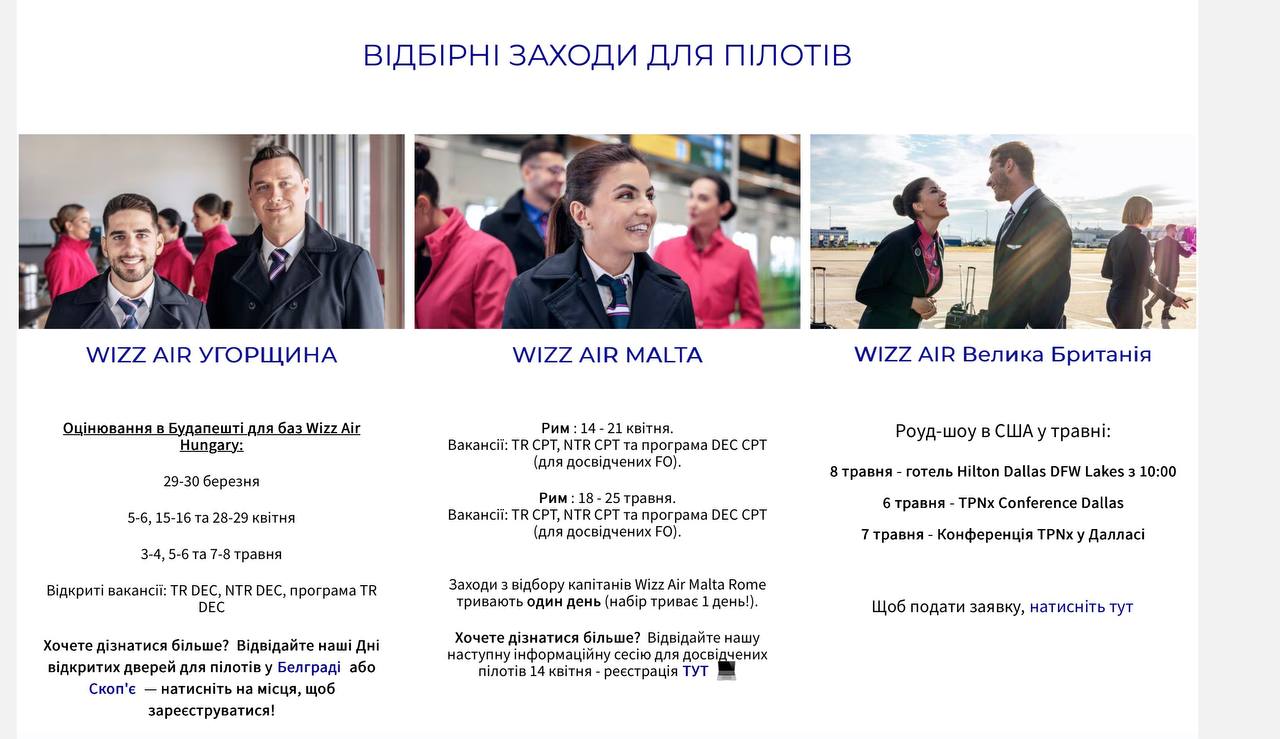 Від офіційних сторінок Wizzair поширюється реклама, в якій йдеться про повернення авіакомпанії в Україну і прикріплене посилання з реєстрацією на набір в команду екіпажу. В анкеті йдеться про найближчі рекрутаційні заходи в Берліні, Празі, Кракові та Варшаві, заплановані на квітень. Також серед запитань – чи має респондент право на роботу в Україні та чи бажає працювати саме тут.