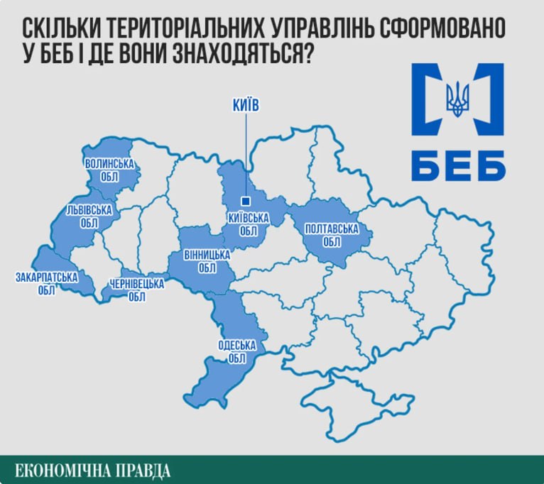 Станом на 2026 рік із 24 передбачених законом територіальних управлінь БЕБ функціонують лише 9, ще 15 — відсутні, що обмежує можливість реагування на економічні злочини в регіонах.